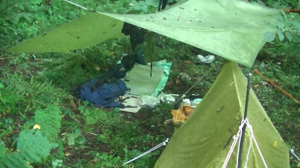 夜半に降り出した雨が思いのほか強く、またテン場の地形にやや傾斜があったのか、私の寝ていたマットの下とグラウンドシートの間に雨水が浸入していました。