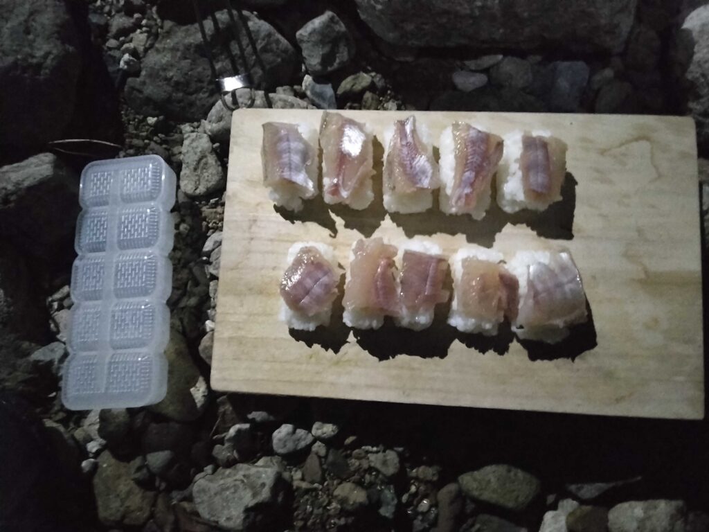 食材(イワナ)の数は揃っていますが、二人分の胃袋を満たすイワナ寿司のネタになるような刺身サイズがありませんでした。